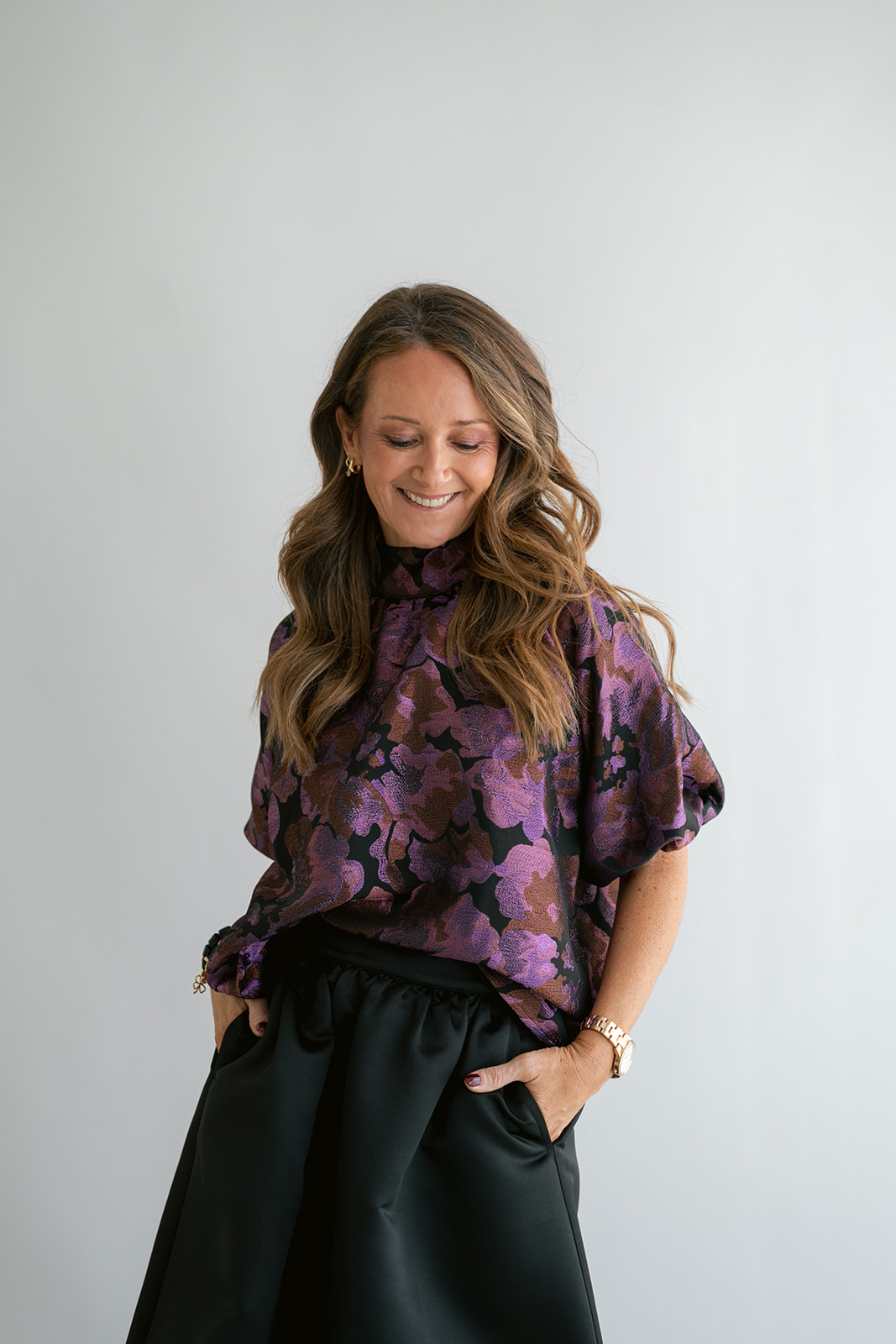 Deze blouse valt ruim, je kan een maatje kleiner nemen.