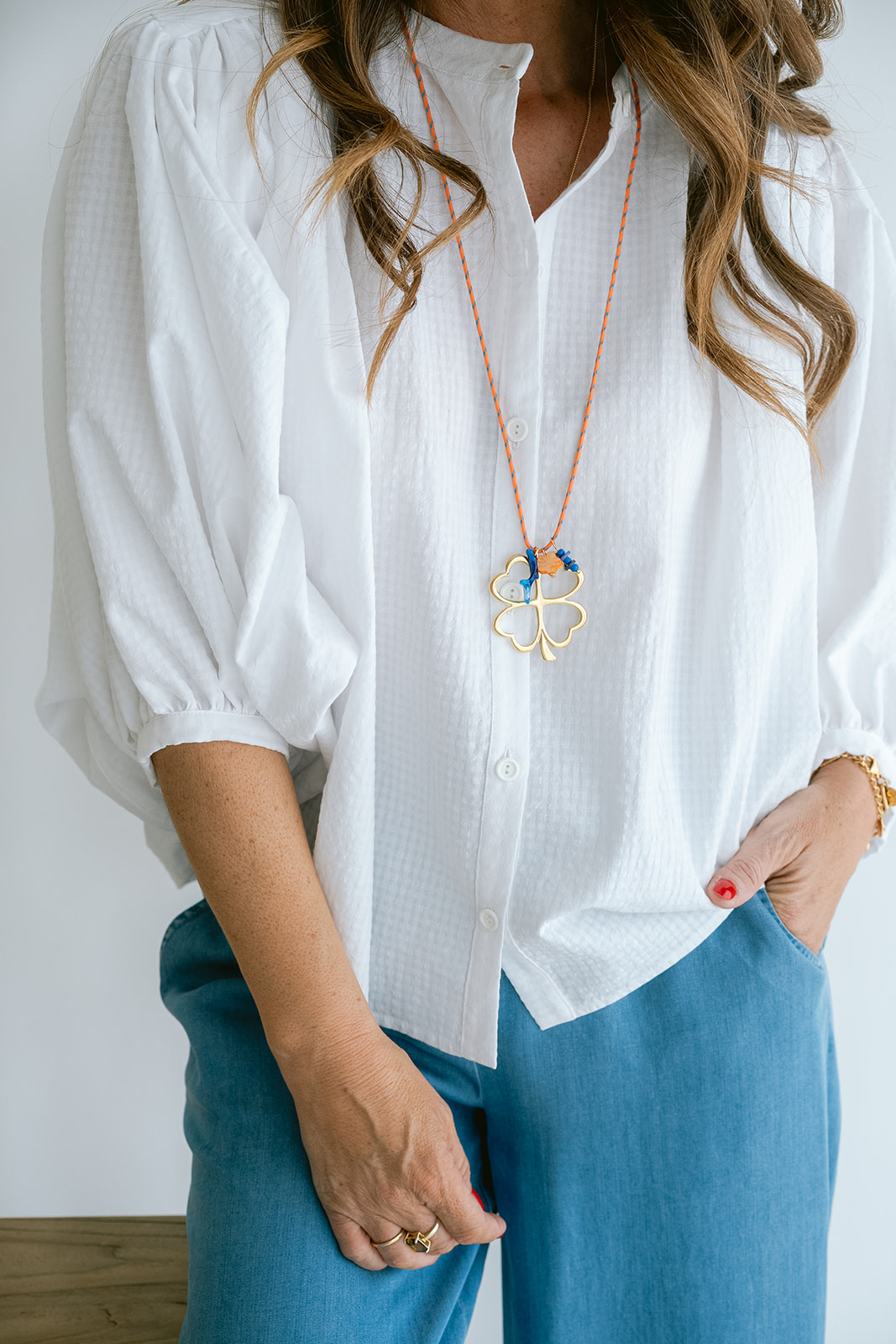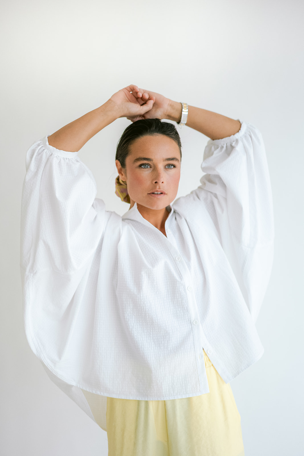 Nu in fris wit geruite versie, deze blouse kan je eindeloos combineren. Deze blouse heeft een brede mouw en valt iets ruimer.