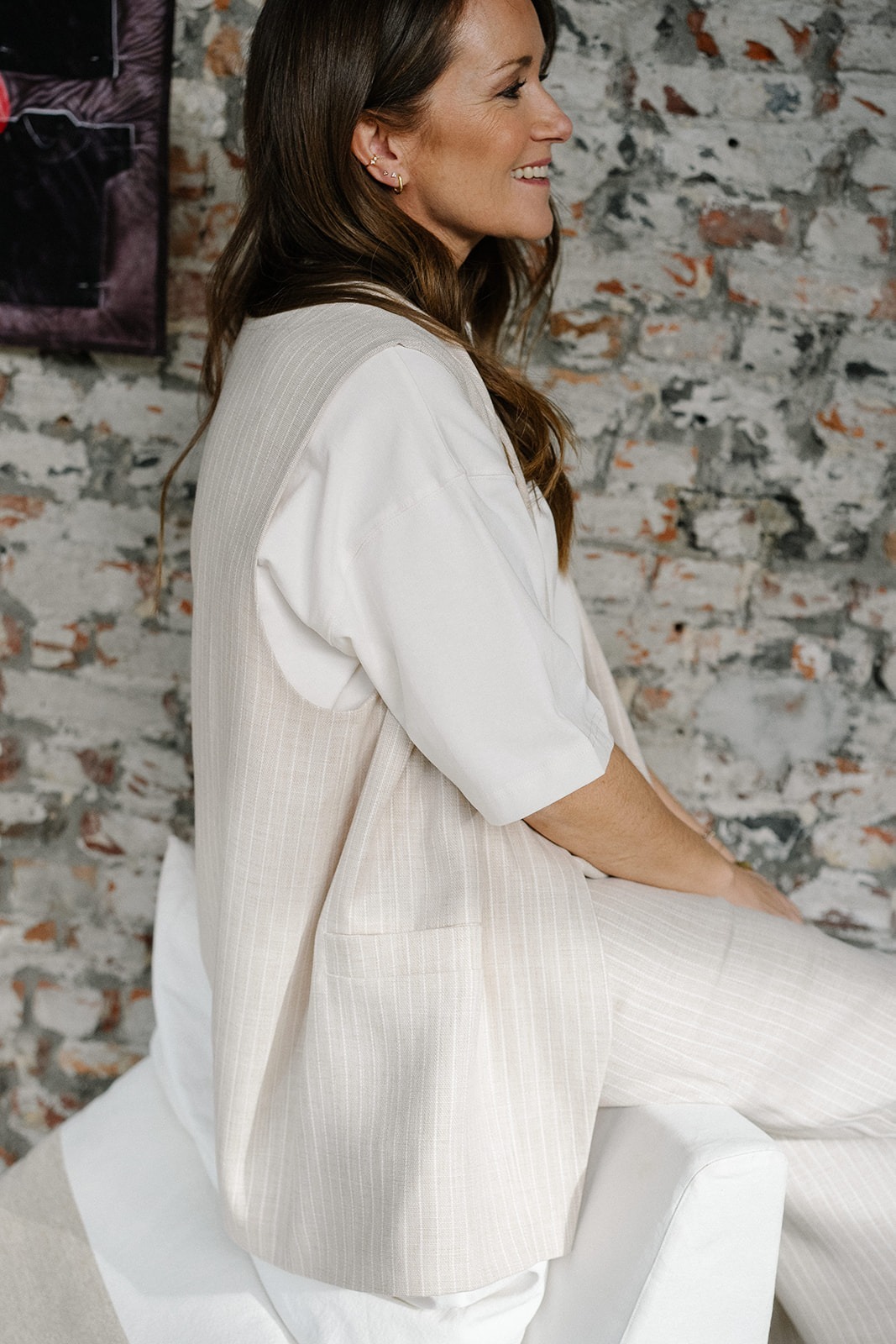 Deze mouwloze vest heeft een oversized fit. Perfect vestje om heel wat van onze looks af te werken. Combineer met de Sam pants, Rosalie skirt of Juliette skirt voor een suit-effect. Ook op een jeans met een Viktor t-shirt heb je onmiddellijk een vlotte outfit.